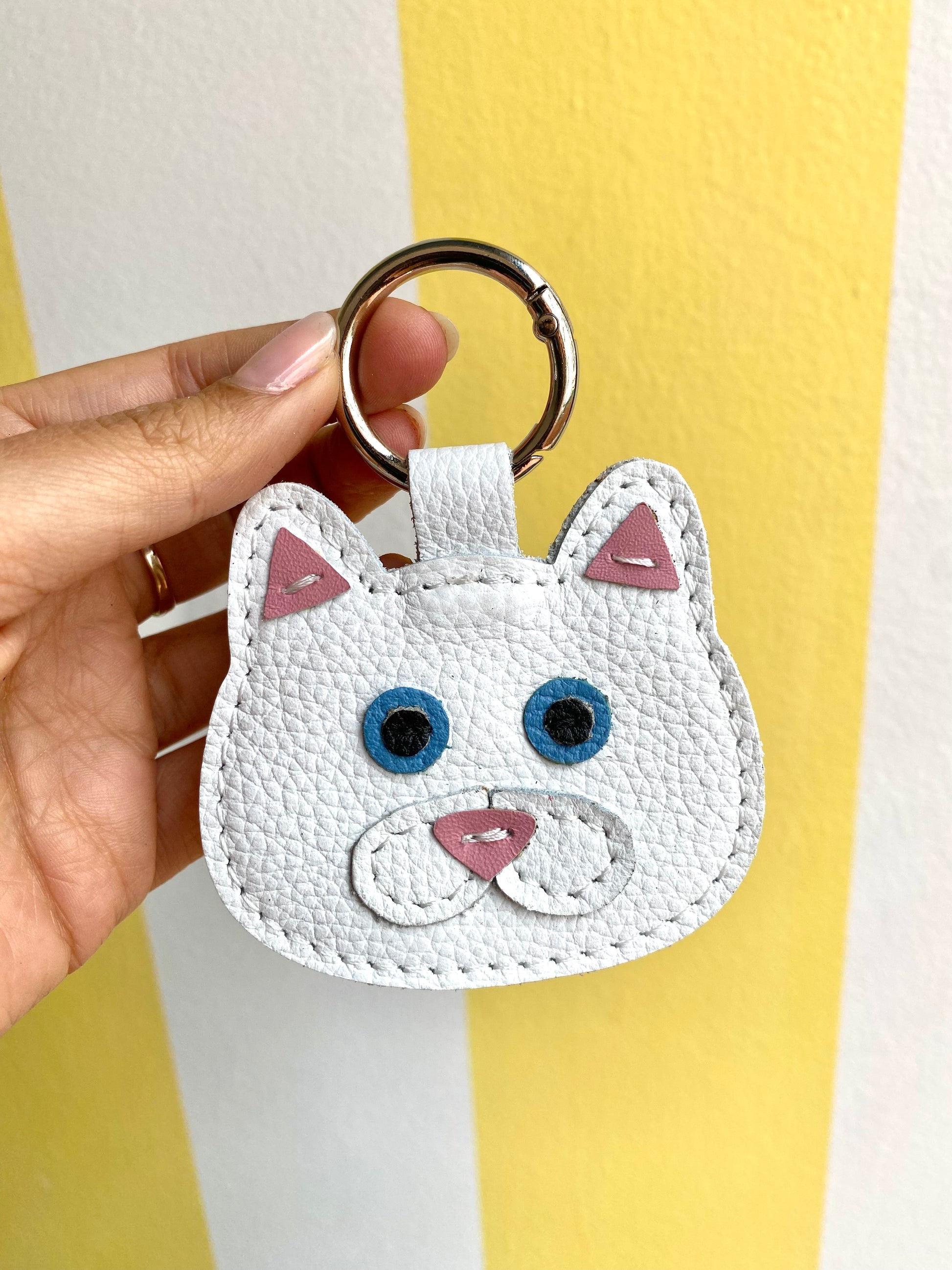 * Rescatamos los retazos de otros para crear tesoros con la cara de tu gato. Por esta razón probablemente haya una variación en los colores y texturas de los cueros de tu llavero. Todos son únicos.